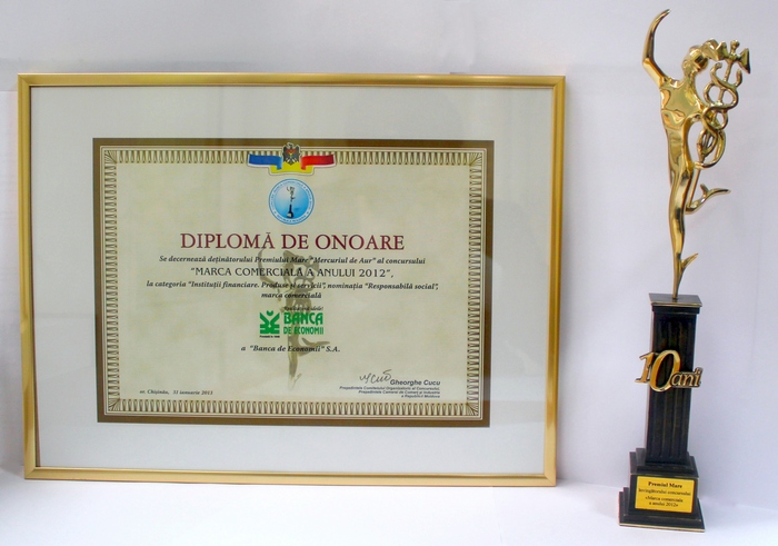 În cadrul ediţiei jubiliare a concursului Marca Comercială 2012, performanţele Băncii de Economii S.A. au fost recunoscute prin desemnarea premiului Mare Mercuriul de Aur, la categoria "Instituții Financiare. Produse și servicii", Nominalizarea Responsabilă Social.